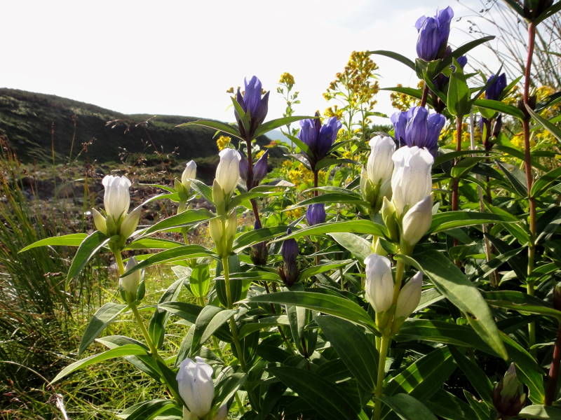 アルビノ種(白変種)は突然変異種ですが、数万株に一つの確率なそうですが、なかなか見つかりませんね!それだけに見つけた時の感動が大きいのかもしれません。エゾオヤマノリンドウは大雪裾合平で見つけました。後はこれまでも写した花かも知れませんがまずはミヤマオダマキの群生!これは夕張岳で写しました。礼文島の礼文林道にはあちこちに大きな群落が見られますね!エゾオオサクラソウは楽古岳の麓で写したものです。アポイ岳の1合目付近と幌満のお花畑へ行く途中には確実にオオサクラソウが咲いておりますね!又、ピセナイ岳に行く林道ではアルビノ種を見つけた事もありました。最後のミヤマダイコンソウはオロフレ山の頂上直下にありました。