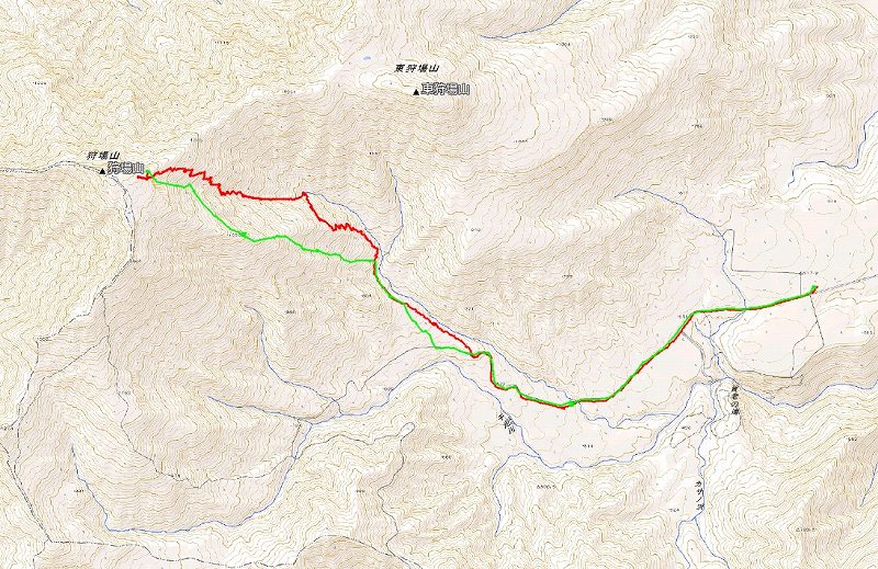 GPSログ・登り-赤、下り-緑