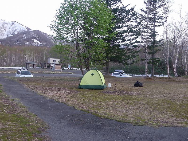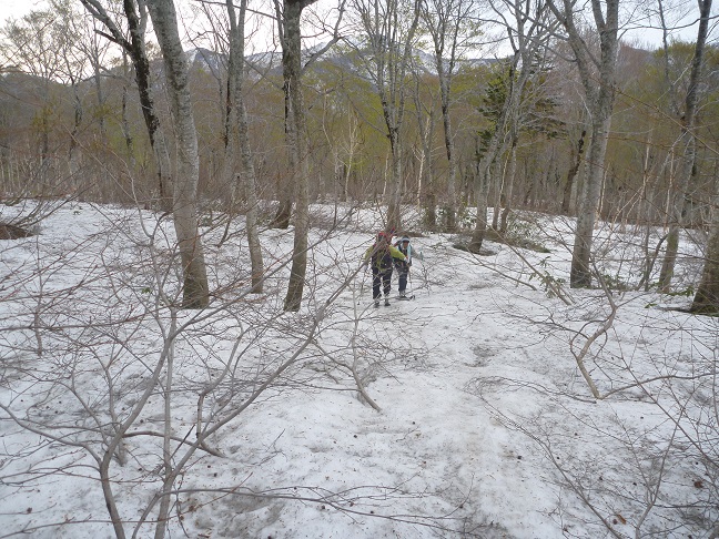 14日(土)賀老の滝キャンプ場にテン泊し、翌日(15日)快晴のもと『狩場山』東側大斜面(沢)を気持ちよく滑ってきました~と言いたいところですが、急斜面にけっこうてこずりました。3人とも初めての残雪期の『狩場山』。事前にいろいろと調べて山行に臨み、また14日下山してきたパーティー、15日出会ったパーティーの方々から情報をもらい登りました。残雪期の『狩場山』これから毎年必ず滑る山となります。