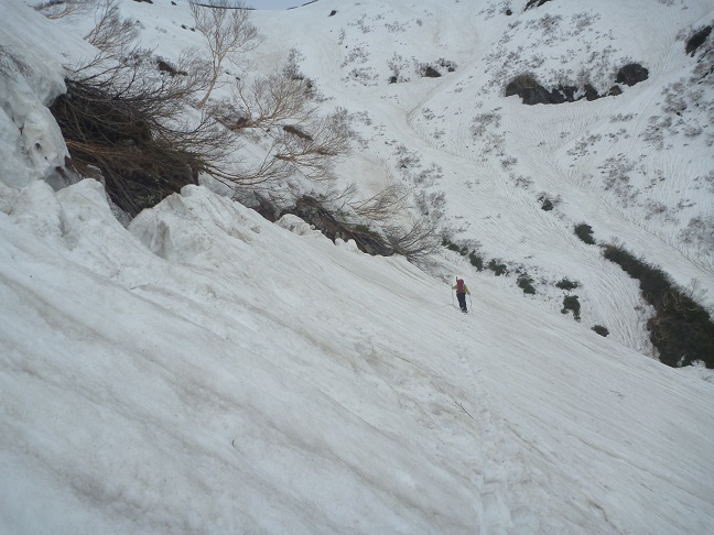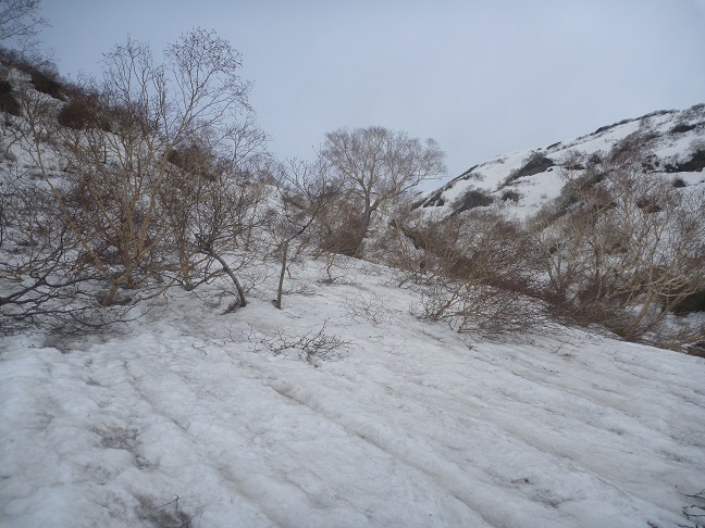 10:20東側大斜面(沢)を登る