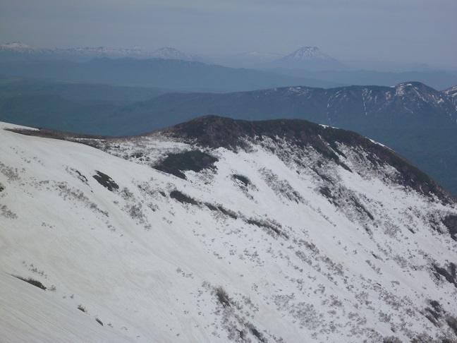 稜線に出ると遠くに羊蹄やニセコの山々が