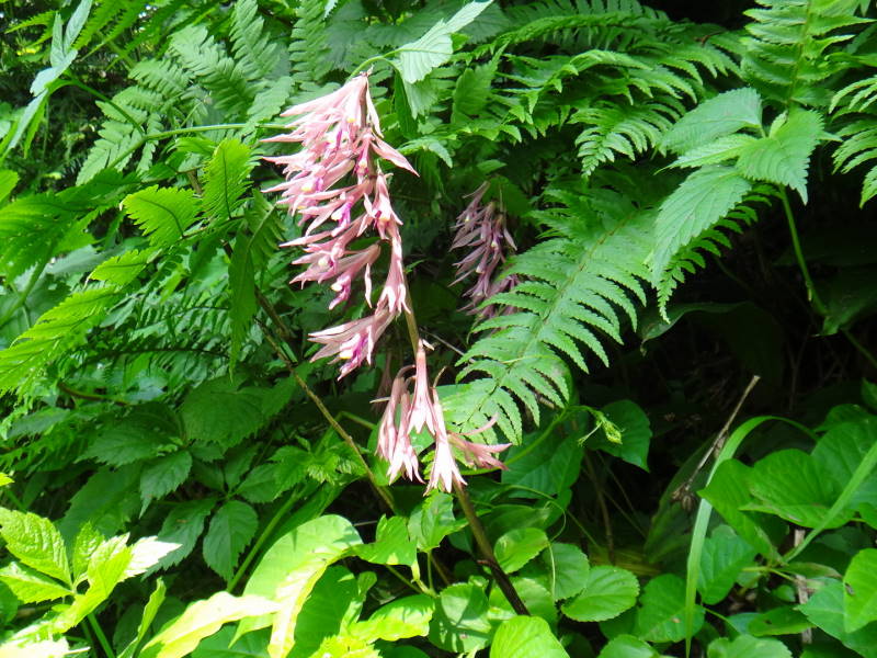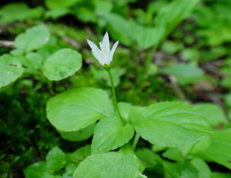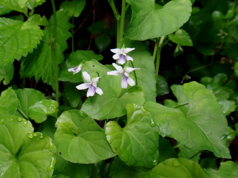 最初はエゾノレイジンソウです。最近増毛産地と樺戸山地で見つかったマシケレイジンソウは花柄に開口毛が密生し花弁の距が巻いているのが特徴のようですが、そこまで確認しておりませんので一応エゾノレイジンソウと致しました。後はおなじみのサイハイラン、タニギキョウ、ツボスミレですが、白いスミレは他にヒカゲスミレがありますが、こちらは地上茎がなく、葉は心円形ではなく、長卵形または長三角形で違いがあるようです。