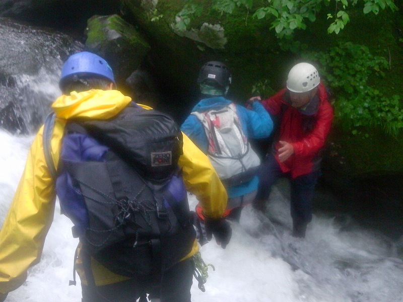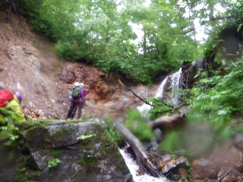 相当強烈な「沢入門、とくにやぶ漕ぎ」となったと思います。下山が遅くなり、心配したJ子さんが夏道460m付近まで登って出迎えてくれました。