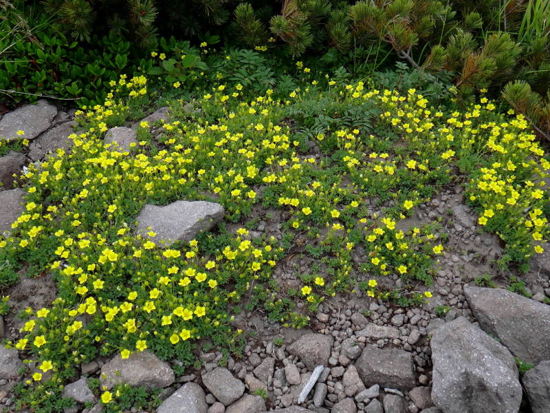更にもう少し! 札幌のO 2016年7月19日(火) 9:01 頂上付近にはイワヒゲ、メアカンキンバイの大きな株もありました。コマクサはさすが高山植物の女王でやはり写さなければなりませんね!今年は雪が多く大きな雪渓が残っておりましたが、解けた所には何時ものようにキバナシャクナゲが転々と咲いておりました。 イワヒゲ メアカンキンバイ コマクサ キバナシャクナゲ