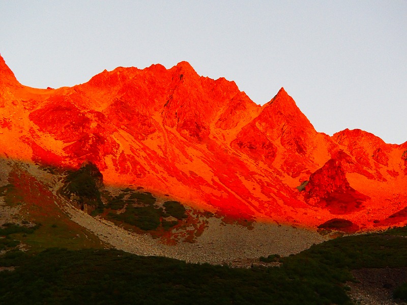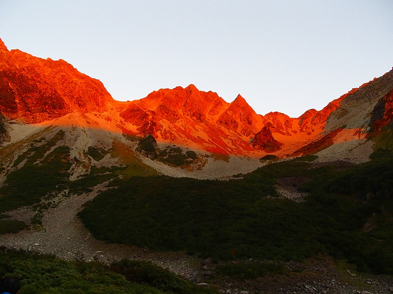 9月9日~11日穂高縦走。3日間晴天。1日目は上高地から涸沢ヒュッテへ。青空と月、満天の星、あ~素晴らしい。2日目は真っ赤な山々の朝焼けをみることできた。大満足で、出発。北穂高岳目指します。尾根に出ると、富士山、北岳、間ノ岳、北アルプスの山々。槍岳も凛々しく美しい。北穂高岳で昼食弁当を食べ、さあ涸沢岳を目指します。一歩一歩慎重に、「3点確保、大丈夫」とつぶやきます。2日目宿泊の穂高岳山荘に着いた時は、心底安堵しました。3日目、星空をみながら出発準備。奥穂高岳山頂について、まじかにジャンダルムが・・。髪の毛逆立ちます。私たちは前穂高岳方面へ。上高地について、歩いてきた山々が見えます。大満足の3日間でした。
