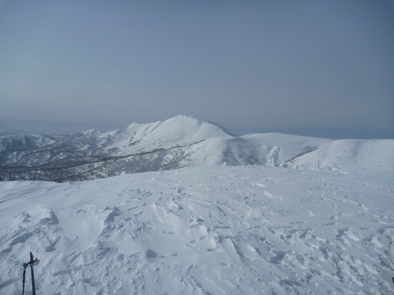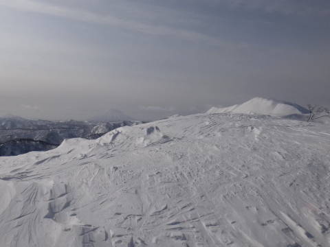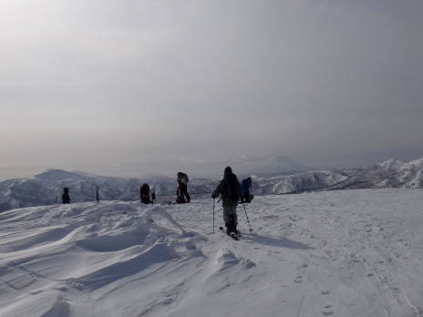 ★稜線上&頂上は強風のため、滑降準備してすぐに頂上から下山開始(15分)する。