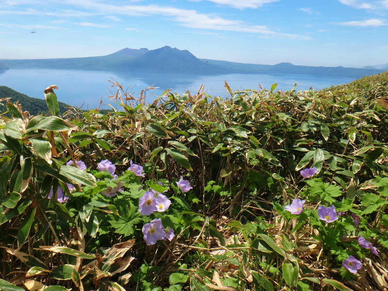 5/31羽○さんLでイチャンコッペに山菜山行に行って来ました。久しぶりの三○さんも含めて7名。この時期にしては暑すぎる中、登って来ましたが、花はそれ程多くはありませんが、オオタチツボスミレ、ニシキゴロモの他ミヤマスミレ、ミヤマオダマキ、ツバメオモト、エゾキケマン。頂上近くになって風不死、樽前、支笏湖を眼下にシラネアオイ、ムラサキヤシオツツジが綺麗でした。頂上では暑さの中冷たいビールが好評でした。下りは本来の目的の山菜、ウドを大量に収穫し帰りました。野牛山方面にはミツバがあるとの事で寄ってみましたがまだ早いのかほとんどありませんでした。