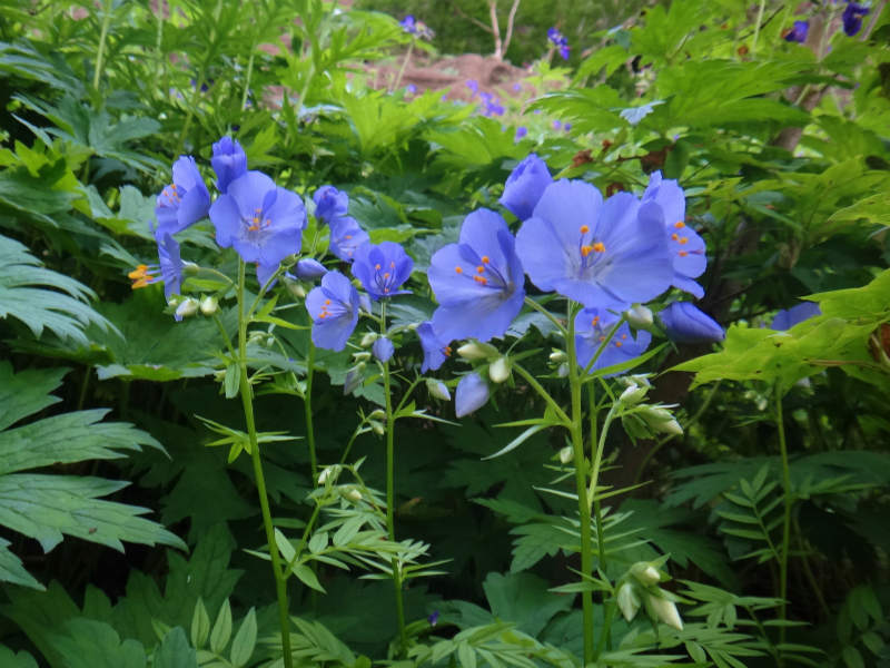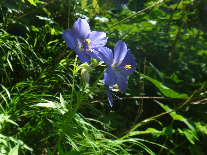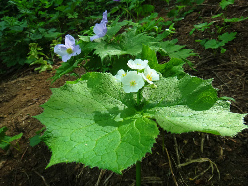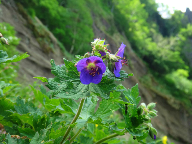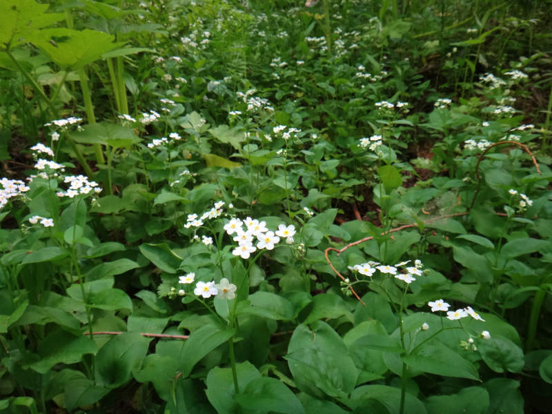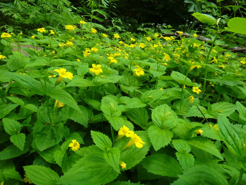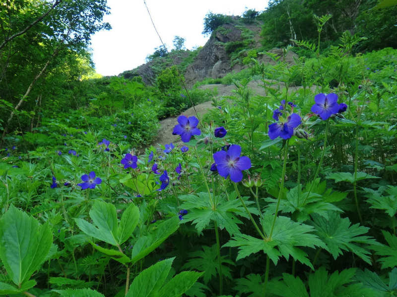 例年は6月下旬に訪れるのだが今年は少し花の時期が早いかもと思い近郊では最も花の多い定天に行って来ました。まずは他ではあまり見ないタチカメバソウが多くみられました。オオタチツボスミレ、ニリンソウ、シラネアオイなどおなじみの花が続きお花畑ではやはり少し早いのかあまり咲いてはおりませんが、エゾグンナイフウロが少しとイワベンケイ、センボンヤリ、ミヤマオダマキ、キクバクワガタ、サンカヨウなどが咲いておりましたが、サクラソウモドキは1輪だけがわずかにつぼみをつけておりました。下りニオオバミゾホウズキの大きな株が沢沿いに咲いておりました。