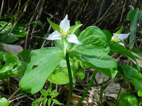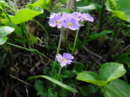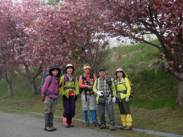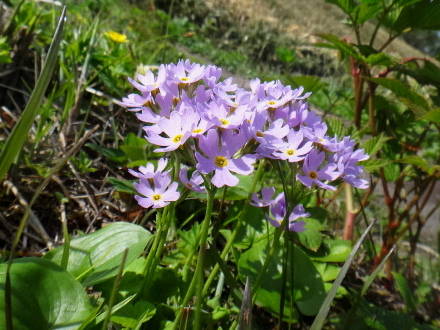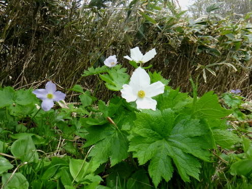 悪天候が予想される中、伊達紋別岳に6人で行って来ました。登山口はエゾヤマザクラの八重が満開!シラネアオイ、タチツボスミレやミヤマスミレの咲く登山道を辿ると7合目の先にユキワリコザクラが2~3か所に見られました。頂上直下にはシラネアオイのアルビノ種も2~3株程ありました。その他マイヅルソウ、エゾカンゾウ、キジムシロ、白いミヤマエンレイソウ、ノウゴウイチゴ、ヒメゴヨウイチゴ、フデリンドウ、オオカメノキ、チシマフウロ、ニシキゴロモ、目立たない花ではヒメナツトウダイ、クルマバツクバネソウ、コウライテンナンショウ等もありました。当初ガスっていた天気も上がり雨も降らず今回は雨女は居なかったと思います。