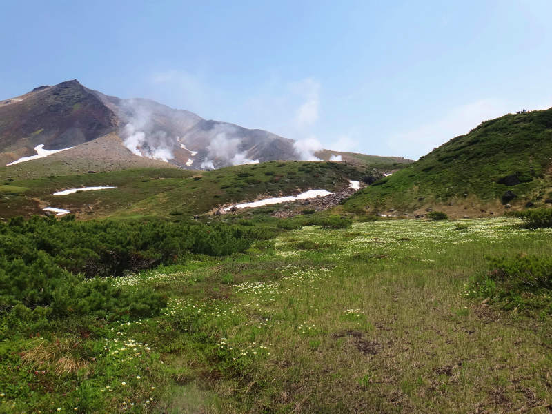 今年の夏山入門は裾合平のチングルマの群落を見たくて何時ものカミホロからかえましたがちょっと早かったようですが多少はその雰囲気も味わう事が出来ました。来年は1週間遅くしようと思います。それでも旭岳をバックにした写真、当麻岳バックの写真。最後は鏡沼付近からの小群落の写真でした。ちなみにチングルマの群落は忠別沼付近、化雲岳付近のカムイミンタラ辺りが素晴らしいですね!
