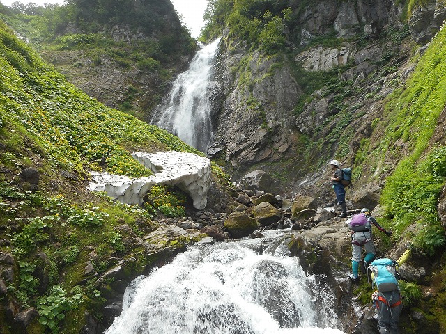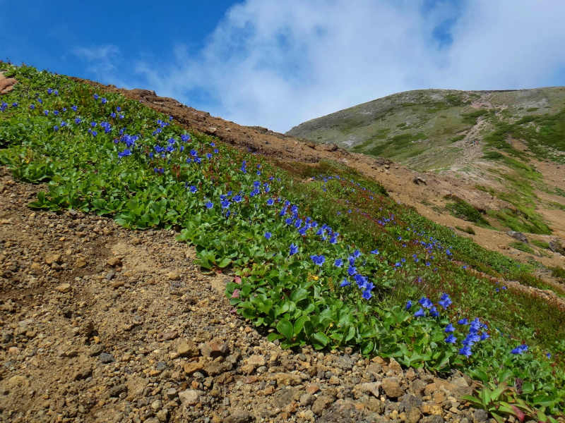 会山行尾根組は黒岳、北鎮岳に日帰りで行って来ました。大雪はこの時期でも花が咲き乱れておりました。黒岳ではダイセツトリカブト、ウメバチソウなど、北鎮岳ではイワギキョウやチシマクモマグサ等が綺麗でした。沢組みとは互いに交信しながらほとんど同時に黒岳非難小屋に合流致しました。