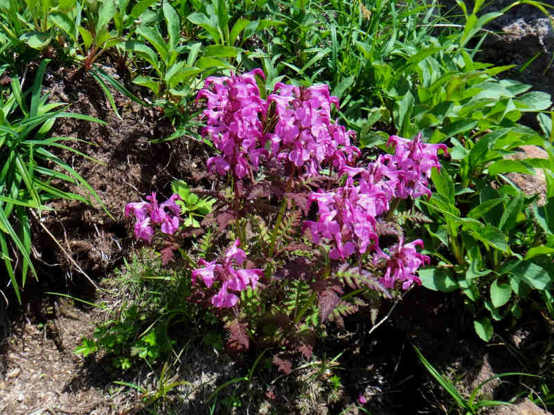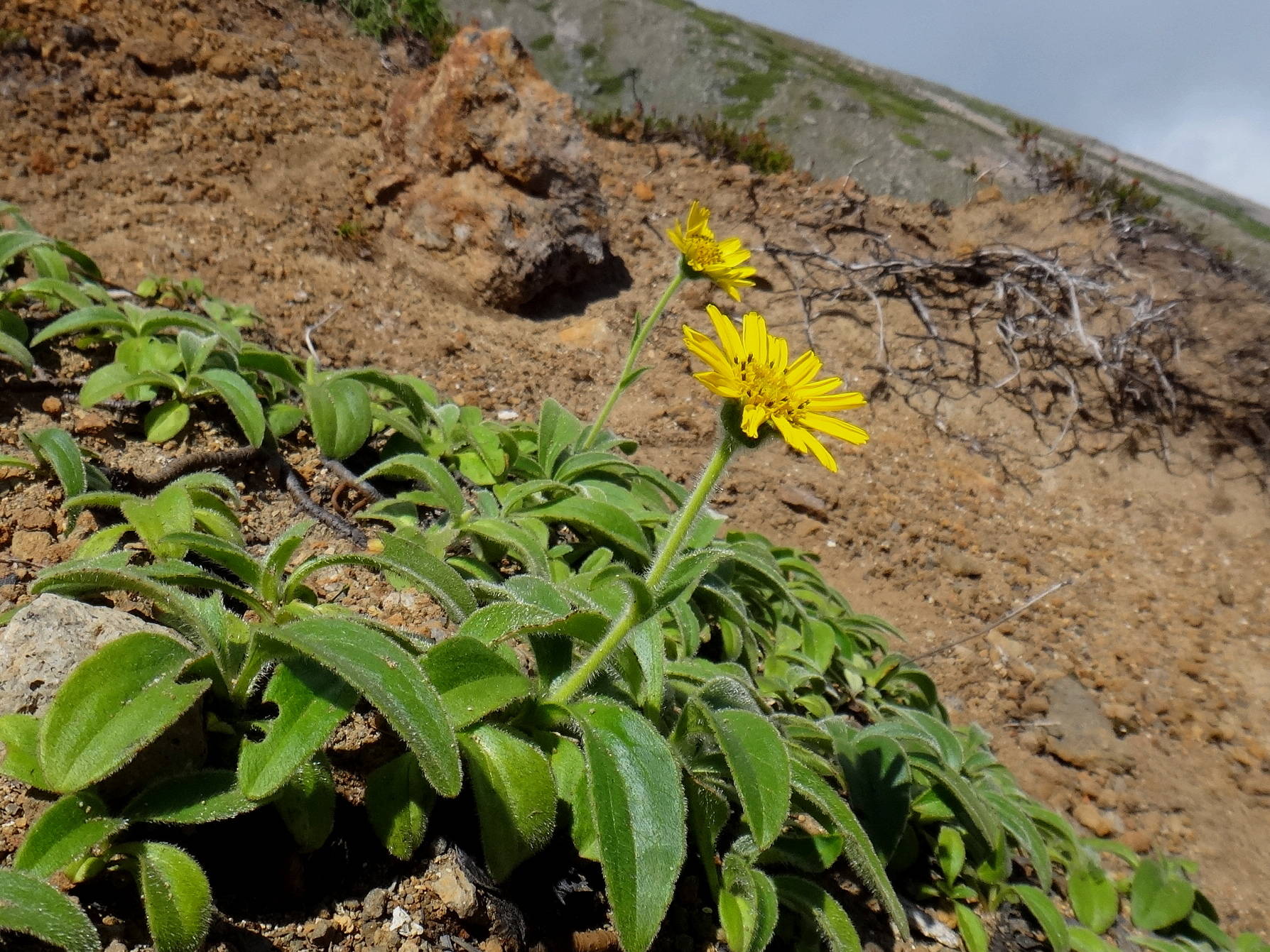 この時期でも雪渓の解けた後に名残の花が咲いておりました。チングルマ、コマクサ、ヨツバシオガマ、エゾウサギギクも添付致しました。