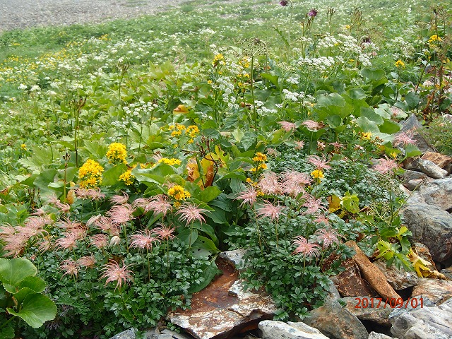 9/1 白馬岳から白馬大池を経て栂池平へ下山しました。これまた花の山。日本海もキラキラしてました。