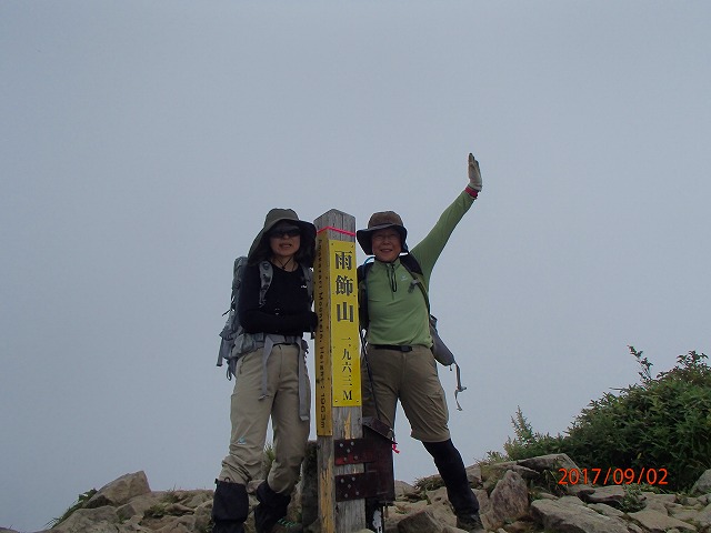温泉にゆっくり入って寝ると疲れも取れ、9/2雨飾山日帰り登山。1963mですが、なかなかの急登で梯子あり、渡渉ありと変化あって楽しい山です。途中からガスってしまい山頂で少し粘りましたが一方向しか見えませんでした。