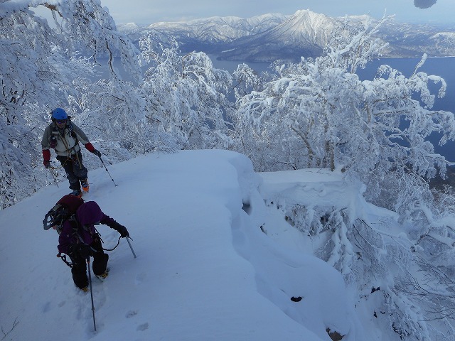 昨年3月の恵庭岳に引き続き、氷雪登山の確認のため行ってきました。登り3時間程度の登山は正月明けの身体には適度な運動となりました。もう少し身体を締めなければなりません。Hさんと私はあと3㎏ほどダイエットしなければなりません。〇高さんは、ただひとり「わたし、やせたわ!」。うらやましい限りです。3名とも余裕があったせいか終始にこやか。私は先行者がいたため追い越したいと思い二人と離れ下山。〇高さんから「団体行動ができないねー」と叱られました。「どうもすいませ~ん」。山ではダメなんですよね。天候が良く景色も良く充実した訓練となりました。後ほどもっと見るにも掲載します。明日救助隊訓練です。しっかりと学んできます。