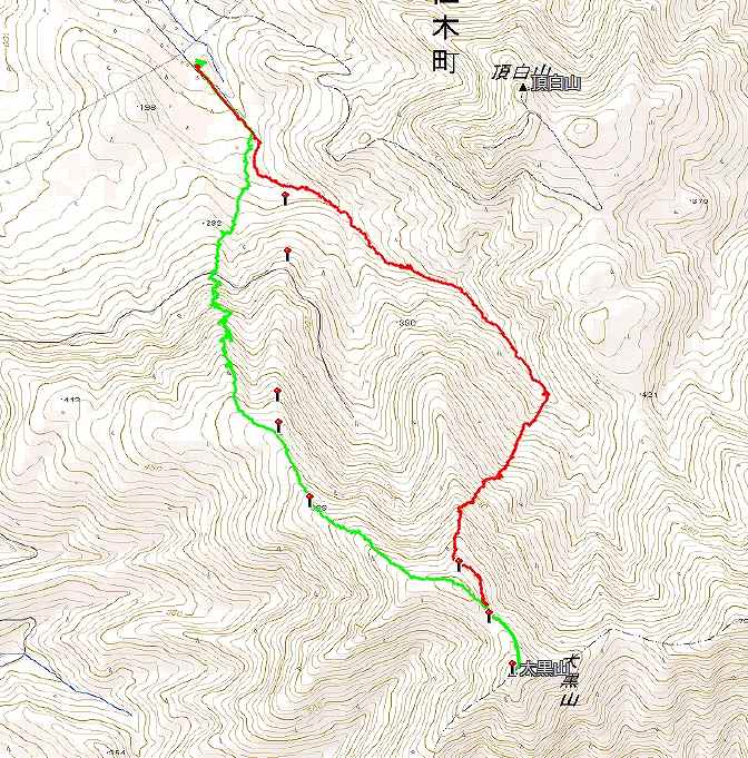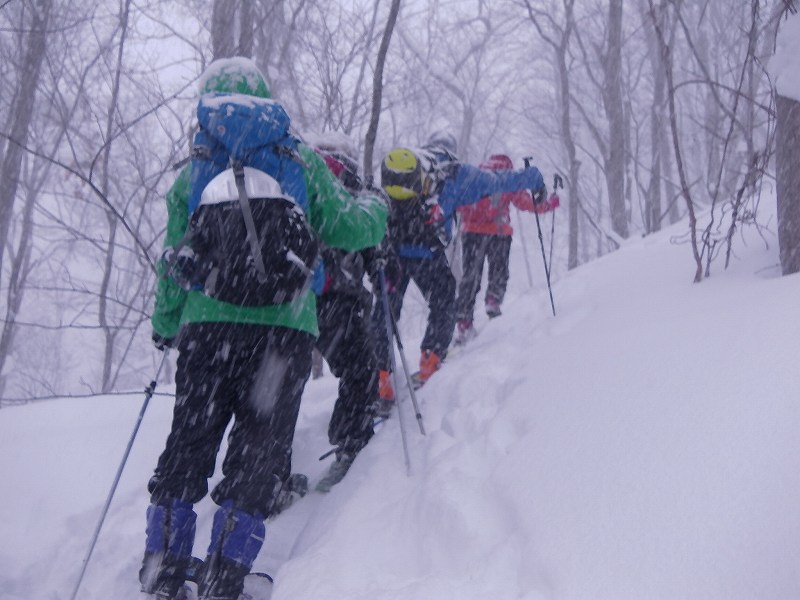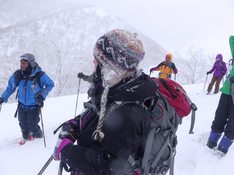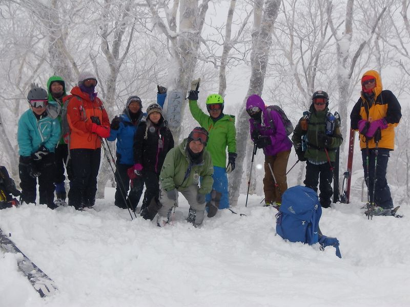スキー組8名、スノーシュー組3名 計11名で『大黒山』に登ってきました。当初登りで予定した尾根を間違えて1本西側の尾根に取りついてしまったが、ほぼほぼ予定通りの時間(登り約3時間、下り2時間)で全員頂上を踏みました。