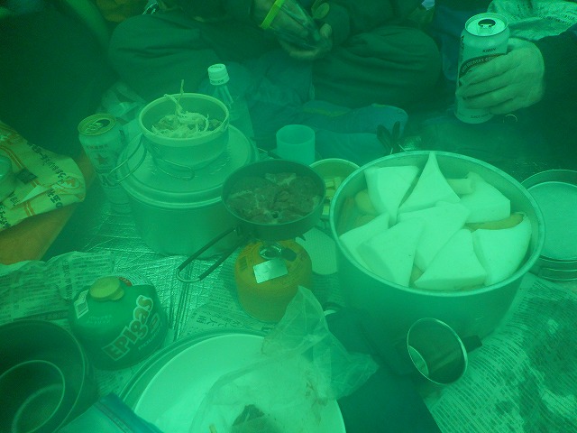 宴が始まると同時に夜が更けていくとまさしく宝石箱がそこにありました。前日の雨が空気中のチリやほこりを流してくれて、更にきれいさを増したような気がします。宴は深夜0時を回りお開きに。翌朝も天候に恵まれ、青空の中ゆっくりと下山しました。皆さんのご協力に感謝を申し上げます。