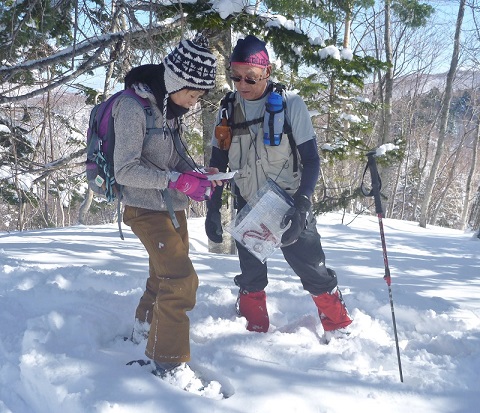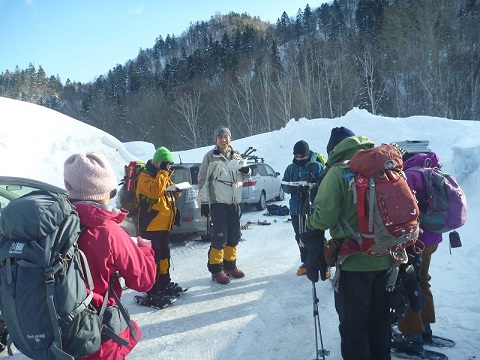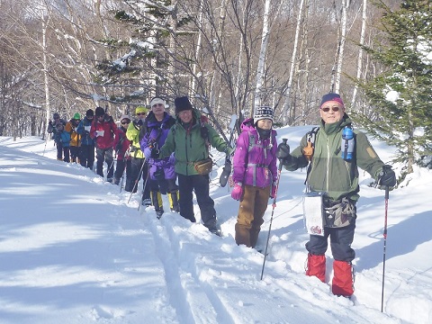 つげ山読図山行 h u-no 2018年3月19日(月) 11:18 3/18快晴のなか12名の参加のもとつげ山で読図山行が行われた。4名づつ3パーテイに分かれリーダーが選択した4コースをそれぞれ登る。複雑な地形で指示された地点を進むのは結構難しかった。2パーテイは山頂で合流したが、1パーテイは長い林道歩きがあり合流できなかった。疲れたが満足感がある山行でした。 奥手稲沢林道を進むメンバー 登山口で 読図するメンバー