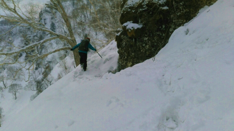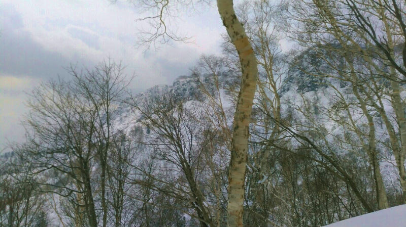 強力なサポートを得て定天Ⅲ峰に行ってきた。何日か前の薄っすらとしたトレースがあったが、この日は私達パーティの独り占め。アイゼン・ピッケル装備は何年振りだろう。一番気になっていた三峰手前の1000mポコはガリガリでもゆるゆるでもなく何とか通過でき、ホッとする。時期的にはベストだったかな。Ⅲ峰に到着するとすぐにⅡ峰へのルートを確認しに降りていく3人の強力メンバー。「行けそうにない」と瞬時に悟ったboriko は動かず~降りず~なので様子はわからない。定天は表から見ても、裏から見てもすごいわ~。Ⅲ峰からⅡ峰~本峰へ行く人もいるらしい。