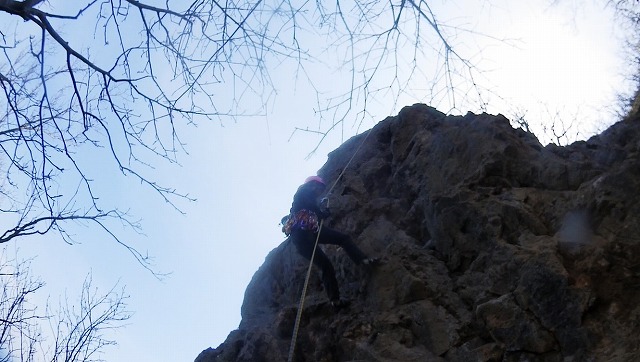 クライミングシーズン始まりです。急きょお互いが休みだったので赤岩へ行くことになりました。駐車場はすでに満車状態。駐車場はまだ雪がありFullには止められません。若い団体、どこかの会の入門とすでに始まってました。我々は東へ向かいます。トリコニーに着くと、東チム、四テラはすでに登っていたため、ここトリコニーでシステムの確認をすることにしました。スタート地点に降りる前にトップでのビレイ、スタート地点に降りてから、ロープワークなどをお互い確認。1本登り、懸垂下降を実施。その後リードを交代して実施しました。3時間にわたるシステムの確認をして、東チムへ向かいます。ここではジェードルとチムニールートをそれぞれ登ります。チムニルート(4級+)は初リードする〇高さんは、最後で苦戦。直登はできず左に逃げはしたもののザックを背負っての登攀は大したものです。私にはできません。パチパチ!お疲れさんでした。
