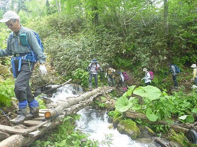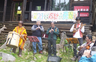空沼岳&万計山荘開き 6/10 h u-no 2018年6月14日(木) 11:50 10名で久しぶりに空沼岳に行ってきました。丁度 万計山荘開きの日でフォルクローレなどの演奏もあり山荘前は賑やかでした。登山道は友の会のメンバーが山道整備を行ってくれていて快適でした。ただ 真簾沼近辺は雪解け水と先日の豪雨で冠水の処も。 登山口で 万計沼手前の滝付近 雲上音楽会 整備された橋を渡る(下りで)