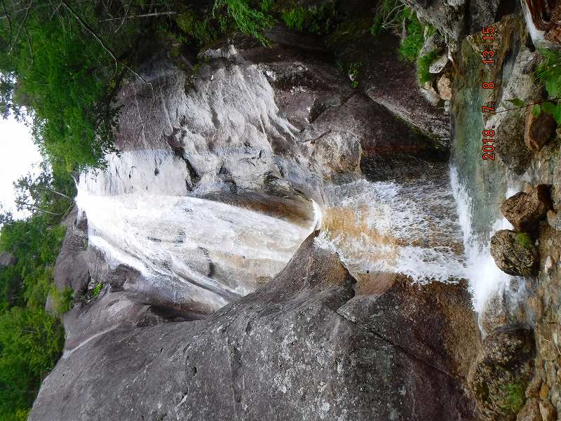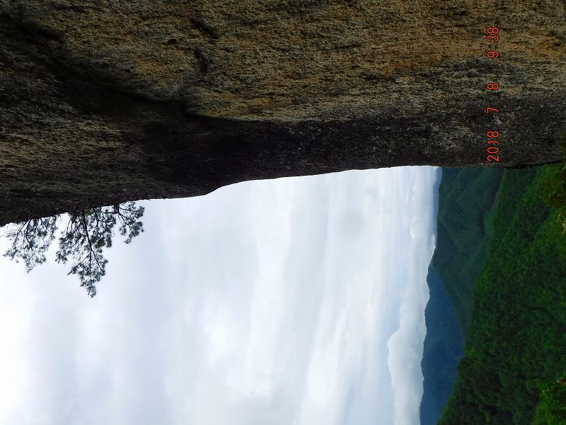 写真1:出発点に戻る手前から晴れ間が(暑い)。朝,ここでは,県外ナンバーのクライミングの人達がテントをたんでいた(この界隈は人気のようだ)。