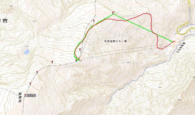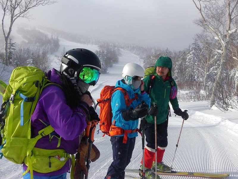08:30、1Fロビー集合でしたがRyoMa車07:45ころ着いたところ、こんな所に車停める場所があったのかと思うほど一番前の位置に駐車できました。ラッキー~~ メルヘン第1リフト1回乗るのにリフト券2枚(1枚350円、2枚で700円)+ICチップカード500円(こちらは返却すると500円戻ってきます。)1200円の支払いでした。リフト1回乗るだけで700円は高すぎる!! 降りてからは次のリフトは動いていなく、ゲレンデを滑るスキーヤーもほとんどいなかったので、ゲレンデすぐ横の新雪を5人で交代しながらラッセルして進む。ゴンドラ終点・山頂カフェ手前の急登にて入門者・重○さんに新雪ジグ切り登りの練習してもらう。今後、実際の山の入ってコツをつかんでスムーズにできるようになってもらいましょう! ピットテスト(斜度20°ほど)ではまだ積雪1m程度であり、30cmのところに弱層(ひじにて5回)が見られました。 重○さん、これからの課題は①深雪(新雪)での滑り②急斜面深雪(新雪)での登りジグ切、そしてこれは基本中の基本ですが地形図の読みとコンパスの使い方の熟知ですね。