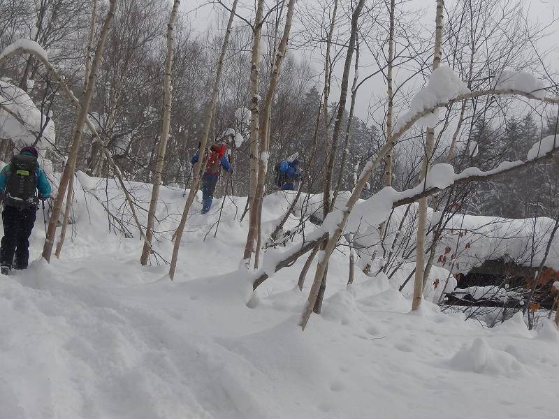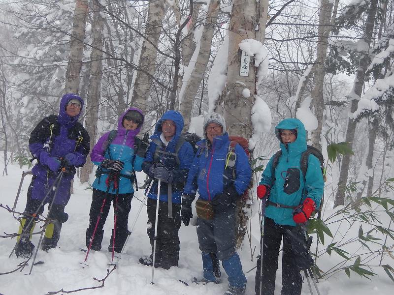 雪山(スノーシュー)入門のステップアップとして南岳山行を企画し、5名の参加があった。