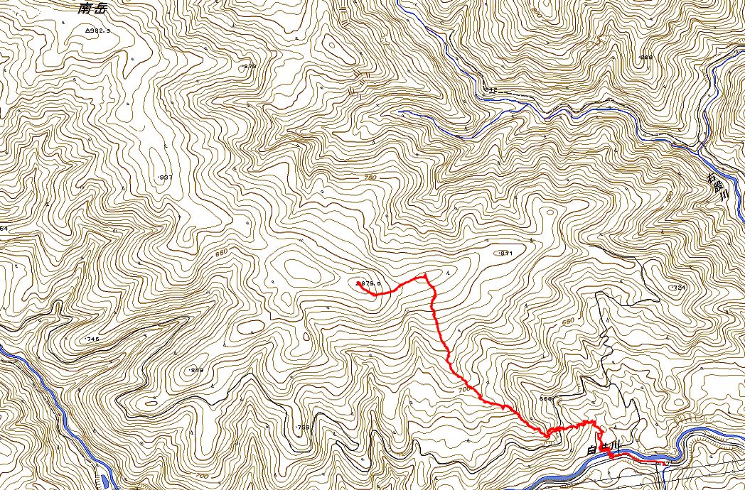 山鳥橋を渡ってすぐのところから最短距離となるルートでスタート、林道を超えて尾根取り付いたところまでで1時間、そこから更に1時間ほどかかって山鳥峰には10時過ぎに到着した。ここまで計画どおりであったが、風吹模様になってきたので当日はそこまでとし、南岳のピークハントは当日参加できなかったK合さんのために残してきた。