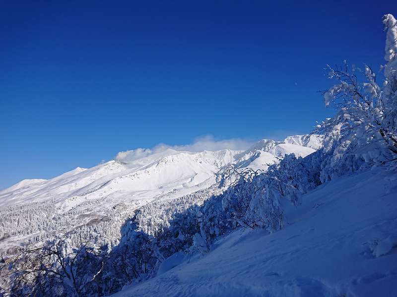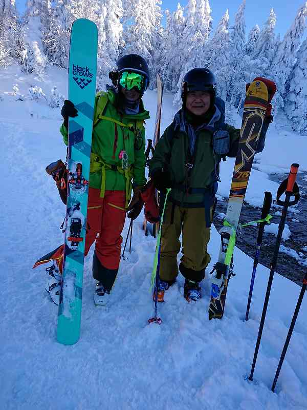 14日に年末のスキー合宿のリベンジでまたまた、しつこくジャインアント尾根に師匠達と行って来ました。バーデンのPに到着したのが11:20。余り雪は降ってなさそう・・・べべルイ川のベンさんが設置してくれた橋を渡り登り始める。Dさんは久しぶりのスキー復帰!年末から沢山の人が入ったのだろう。トレースが硬く荒れており、時折シールも効かない所も多々在り、ほぼ、カチカチなゲレンデ状態を登る^^;復帰第一弾のDさん(74歳)も順調に高度を稼ぐ。流石!6000mを三回登った強者。1300m辺りの森林限界超えるとやはりジャイアント尾根の強風が吹く。登り始めたのも遅かったので、1380m地点で取りやめとし、シールを剥がし荒れていない良い斜面を探しながら滑り降りる師匠に続く。やっぱり!ジャイアント尾根は大好きだけど・・・スキー場みたいな荒れた斜面で人気の外国人の沢山入る山になってしまい・・・少し残念でもある。夜は白銀荘で温泉に入り宴会。翌日は三段山のピークを目指す!!