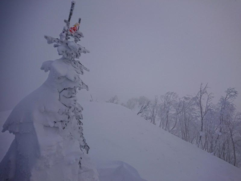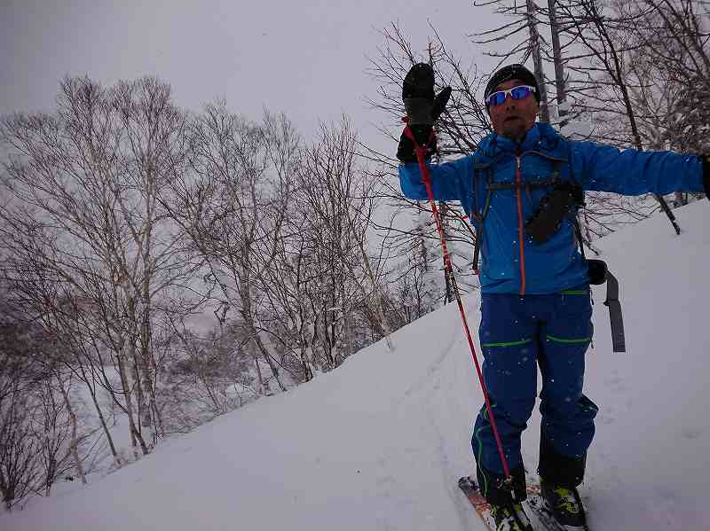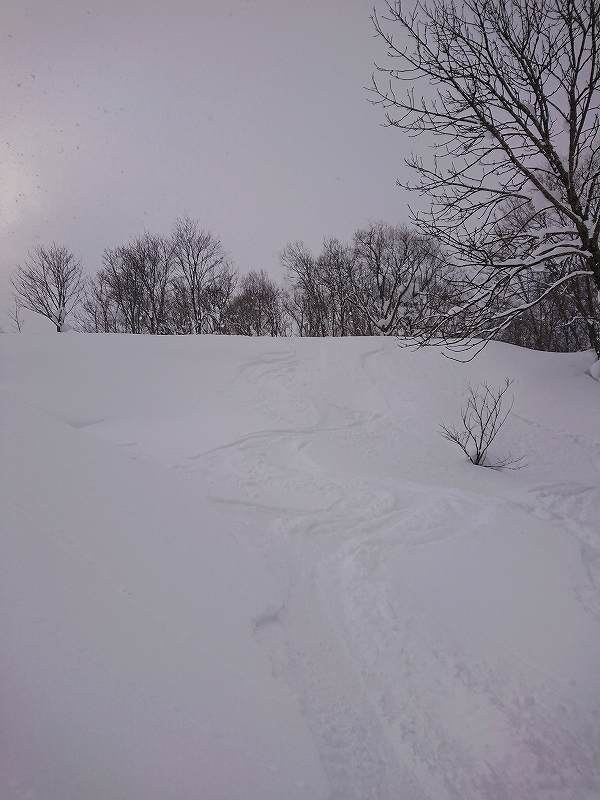 下りで視界がかなり悪く、東側に150m程反れてしまってスキーでの登り返しがキツかった。