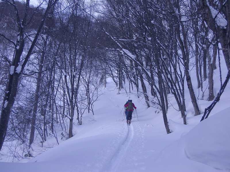 17日<木>悪天候予報のため一週間延期とした臨時山スキー入門であったが、24日<木>も悪天候となってしまった。ラルズ桂岡店(集合場所)にて、予備として設定していた「春香山・土場まで」を選択する。出発時点、雪は降っていたがそれほど強い降りではなく風もそれほど強くない。その後、天気は回復し曇りとなるが、土場から下山開始するころには再び雪が降り出す。入門者Y下さん、登りでスキーが何度か外れてしまうアクシデントあり。ビンディングの留め方がまずかったようだが、調整した後は外れることはなかった。急斜面での登りキックターン、下りキックターンおよびボーゲンターンはまだまだ慣れ&練習が必要と思います。土場からの林道滑りは順調に下ってきました。お疲れさまでした。