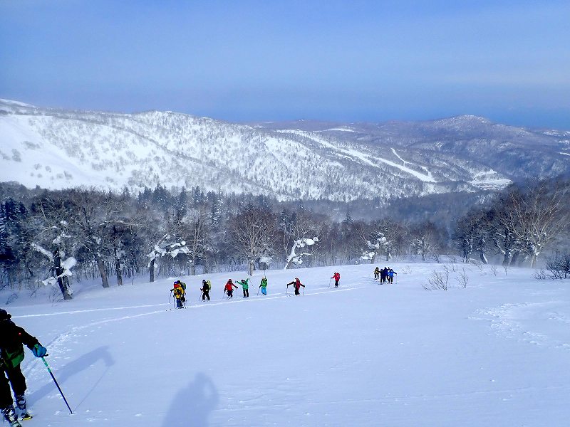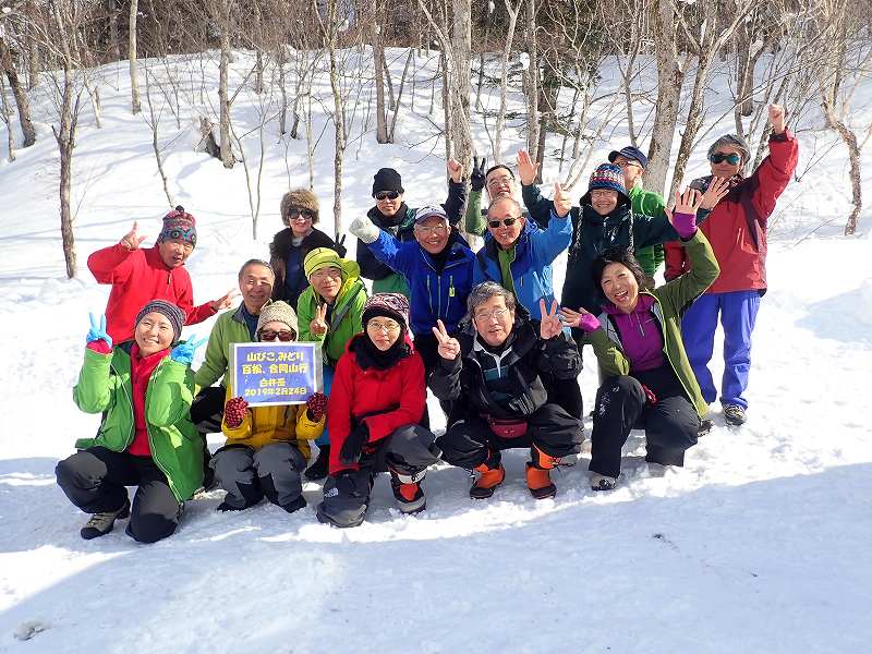 『白井岳』3山岳会合同:山スキー山行 2019.2.24 RyoMa 2019年2月26日(火) 16:32 『白井岳』合同山スキー 百松山岳会9名、みどりの風3名、山びこ4名(J西、mogu、TOBI、RyoMa)総勢16名。強風のため1,230m稜線上にて行動停止となりましたが、雪質も思ったより良く、楽しく滑ってきました。初めての3山岳会合同山スキー山行は成功~ 記念撮影(下り斜面にて) 駐車地点にて