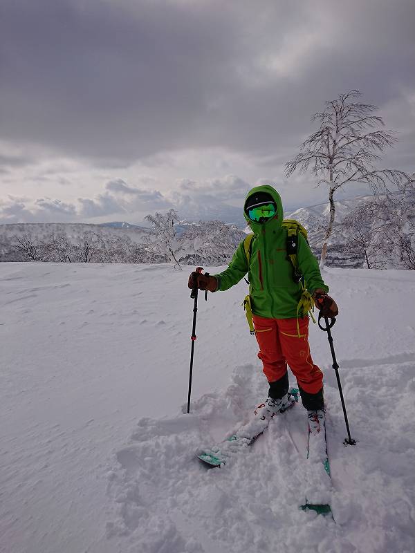 晴天でしたが気温は、二日前の朝里岳GTRと同じくぐっと冷え込んでいましたが、登りは暑くて皆、outer抜ぐ。高度上げると、やはり寒くてツムラの25番を飲んだ。Lさんが久しぶりの山スキーで登りものんびり、下りでは足が攣ってしまいました。トレースもバッチリ在るけど登り返ししないルート設定で帰りも楽チンでした。前日の雪が15~20センチ位積もっており三段山、タケノコ山、富良野岳giant尾根よりも素晴らしい雪質のpowderでした。1153mからのほぼノートラックのpowderを頂いてきました。板が、めちゃくちゃ浮く♪浮く♪Mちゃんはネイチャーガイドさんなので植物の事が詳しくて勉強になりました。