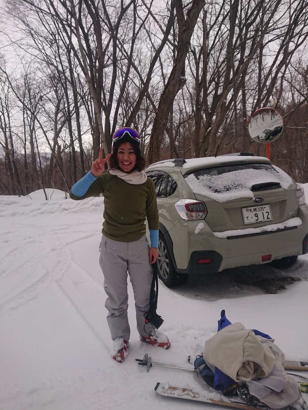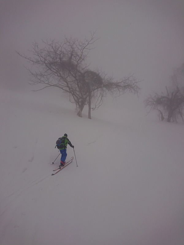 年末に行った時には笹だらけで途中撤退したネオパラ。K君のお友達のNちゃんが飛び入り参加。駐車場は空きが在る。やっぱり雪が少ない。下はカリカリのガチガチだが、高度を上げるとアラレが降って来て視界不良マーカー付けながら進む。ここ、4年で1番少ない積雪でした。山頂の今は営業していないカフェだった建物でまったりしてから下山する。初心者女子は、転ばなくなった。登りの時に積もった5~10センチ程の雪のノートラックを30分で降りて、師匠と鳥の半身揚げを買って帰る。冬山、特に山スキーは、寒いのでさっさと登りさっさと滑り降りて来るのが鉄則だと思う。