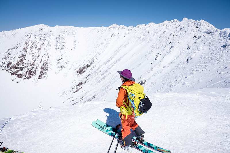 目標だった北海道を代表するスーパースキーの筆頭の1500mの標高差。最大斜度30度の日本100名山の後方羊蹄山のpeakに山スキーで立ち、2つ目の贅沢な夢と目標のお鉢の中を滑ってきました。