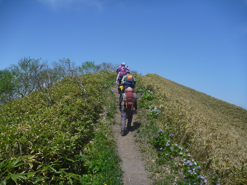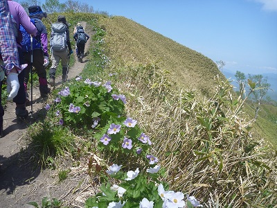 満開シラネアオイの伊達紋別岳 h u-no 2019年5月21日(火) 14:29 19日Ha生嬢リーダーのもと10名で好天の紋別岳を歩いた。シラネアオイの良い時期だけあり、沢山の登山者が来ていた。写真を。 登山口は八重桜が迎える すぐシラネアオイが 七合目で休憩 稜線を歩く