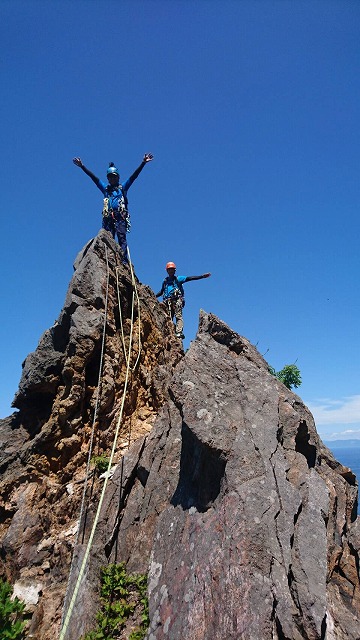 山びこの山行ではなく個人山行を載せることをお許しください。今回小樽市にある赤岩の窓岩リッジに他会のメンバーと行ってきました。7P(ピッチ)と長いですが、同時登攀を行うことにより短時間で済みました。やはり2P目(A2)のアブミを使うところが核心部でした。ノースケイブでのトレーニングや、これまでの山行の甲斐がありました。山びこに入り、様々な山行を経験し、私をここまでしてくれた山びこの会に感謝いたします。ヤマレコにもUPしてます→https://www.yamareco.com/modules/yamareco/detail-1877593.html