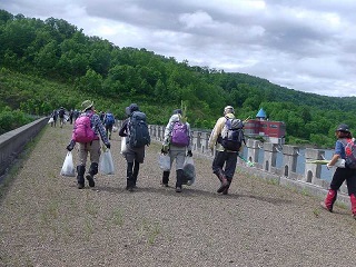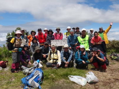 前日リーダーryomaさんから雨でも決行とのメールあり、16日朝けっこうな雨の中札幌を出発する。途中も雨であったが現地エルムダムそばの登山口ではすっかりあがったラッキーだ。タケノコ採りで知られた山でゴミが多いと聞いていたコースです。総勢24名と会員の半分が参加、事前にリーダーより知らされていて火ばさみごみ袋などをしっかり用意している。これまでの清掃登山にないゴミの量の多さにに皆あきれた。それでも山頂近くに来るとタケノコを採り山頂へ着いた。まずまずの見晴らしで大雪の旭岳なども見える。下りでは途中にデポしていたゴミを回収しながらフキも収穫して下山しました。