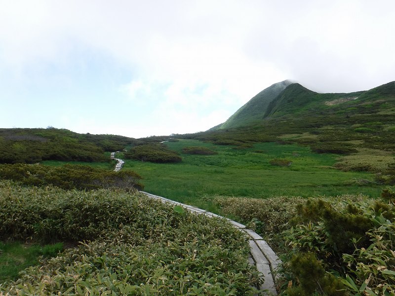 平坦な木道を歩いていると、先に追い越していった単独者がカメラを抱えて不審な動きを見せていた。その個所は以前に札幌のOさんに教えてもらったユウパリコザクラが咲いていた個所だったので、自分が立ち去るのを待っていたのだろう。