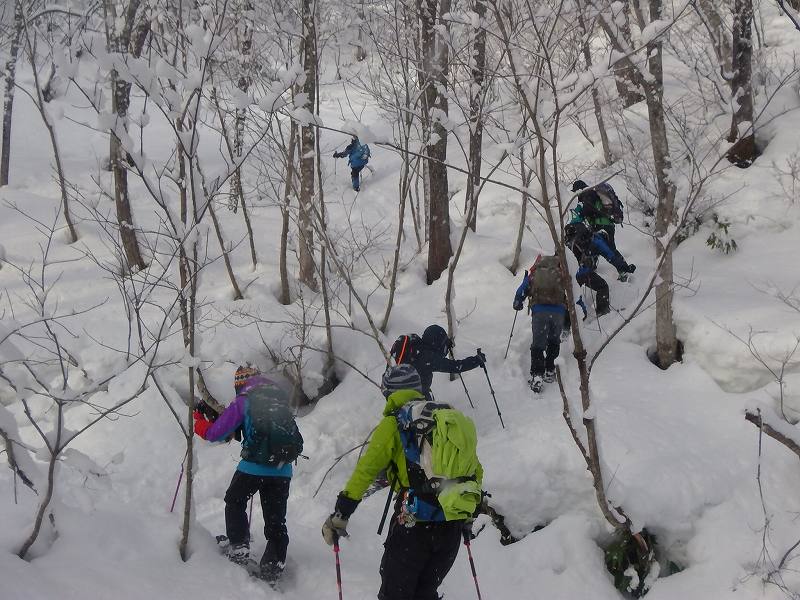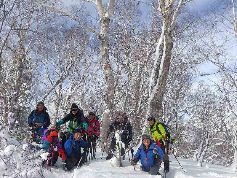 昨年(2018.12.24)悪天候のため「山鳥峰」から引き返したが、今回再チャレンジし「南岳」登頂を果たした。晴れ時々曇り、風はほとんどなし。うっすらとトレースが残っている個所もあったが、ほとんどフルラッセル状態。上部に上がるにつれ雪が深くなるが、9人全員で交代しながらのラッセルなのでそれほど苦にならなかった。登り3時間5分、頂上休憩17分、下り1時間33分=総行動時間4時間55分、とてもスムーズにサクッと登りサクッと下った感じのスノーシューハイクであった。この日『南岳』に入ったのは我々のパーティーのみであった。