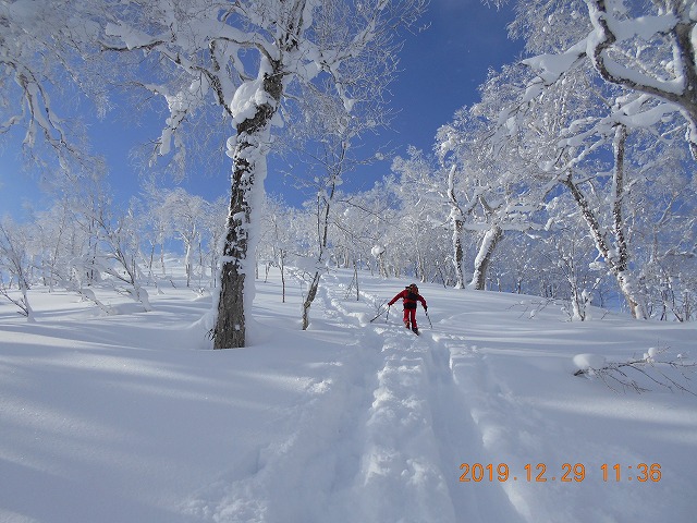 美比内山 久しぶりの雪の感触 dotosan、Hさん、O高さん 2019年12月29日(日) 17:53 雪不足で心配されてましたが、ここ2日間でまとまった雪が降り、天候も含めて雪質は最高のコンディションでした。最後駐車場に降りる点を早すぎたため下山に苦戦しました。登ってきた通り下りればよかったです。私は2か月間の出張のため、久々の山行は全く登れませんでした。これで今年の山行は終わりです。山びこの皆様、良いお年を!(ヤマレコから) 山頂 出っぱーつ! 山頂直下の急登 定天が見えた