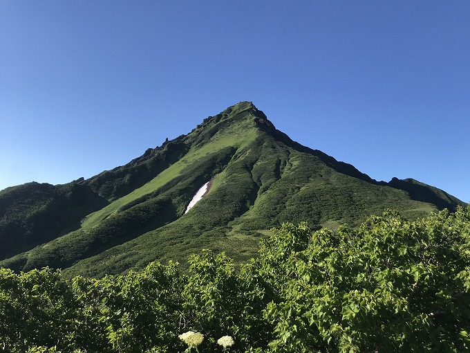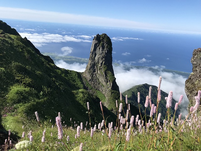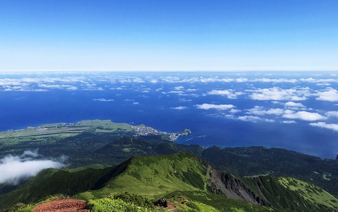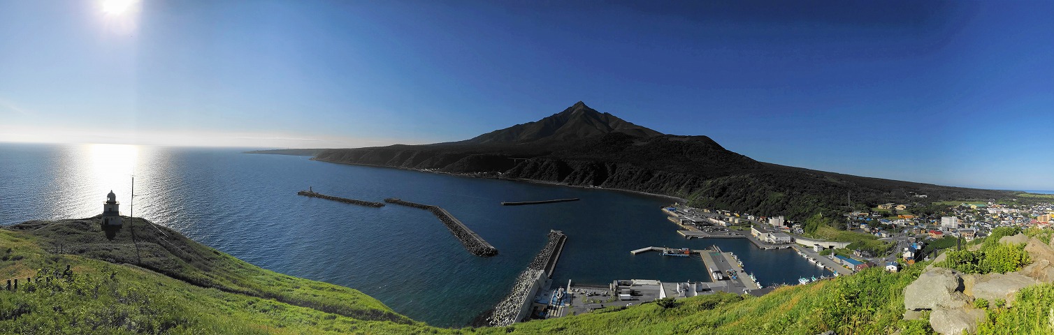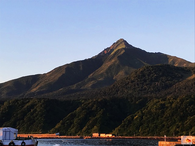 恵まれた天気は翌日も続き、鴛泊港から利尻山がきれいに見えました。フェリーまで時間があったので、裏山のペシ岬に登って鴛泊方面からの利尻山の全景を見ることができました。帰りのフェリーから遠ざかっていく洋上に浮かぶ利尻山を見るのは、登山の思い出とともにとても贅沢な時間で、1時間半ずっと眺めていました(コロナだから客室にいるの何だし~・・)。次回は(もしあればの話)是非、沓形から登ってみたい!!