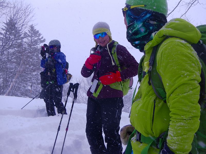 1月31日に大沼山(学校尾根)に行ってきました。リーダーはJさん、メンバーMさん、Iさん、Sの4名。駐車スペースには数台車がありましたが、学校尾根に向かったのはMさんの知り合いの男性2名のみ。トレースが無く雪も深かったので一緒に行動。天候は雪時々吹雪たまに曇り。6人交代でラッセルし2:40でピーク到着。稜線は天候の条件も悪く早々に下山。下りは上部は雪が重く半分ラッセルでがっかりしながら滑っていくが、後半雪も軽くなり気持ちよく粉雪を満喫できた。無事下山し札幌市内に戻ると晴天だったのに少々驚く。