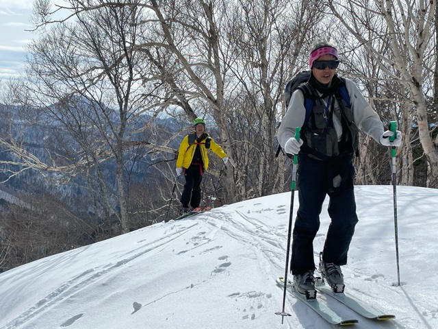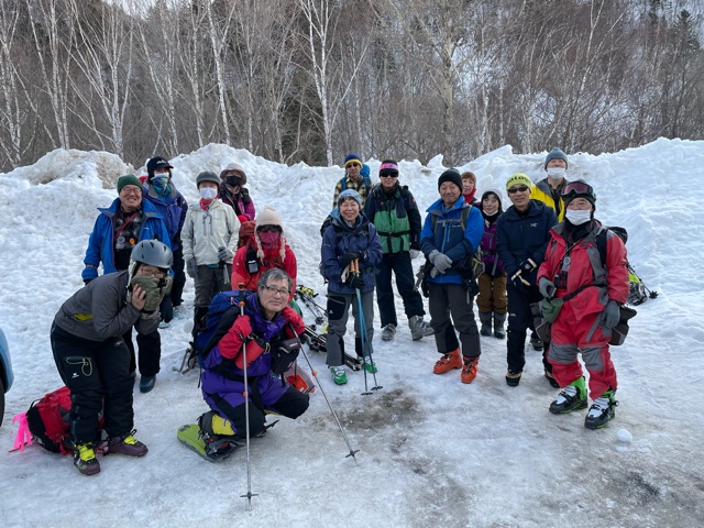 股下山 読図山行 D.I. 2021年3月14日(日) 14:16 3月14日(日)、股下山にて毎年恒例の読図山行を実施しました。スノーシュー組1班、スキー組3班の計4班に分かれてそれぞれのルートを読図をしながら山頂を目指しました。股下山は裾野になだらかで広い地形が続くため各班コース取りに苦労していたようです。天候は晴れて暖かくのどかな山行を楽しむことが出来ました。大人数にもかかわらず大きなトラブルもなく予定時間より1時間も早く下山することが出来ました。ありがとうございました。