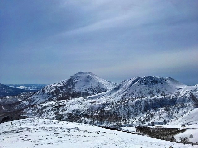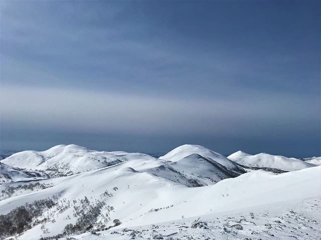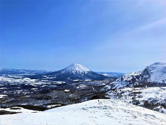 これまでとは違う初めてのコースから、なだらかな尾根を登ってわずか2時間弱。ニセコの山々が近い、白い、美しい。