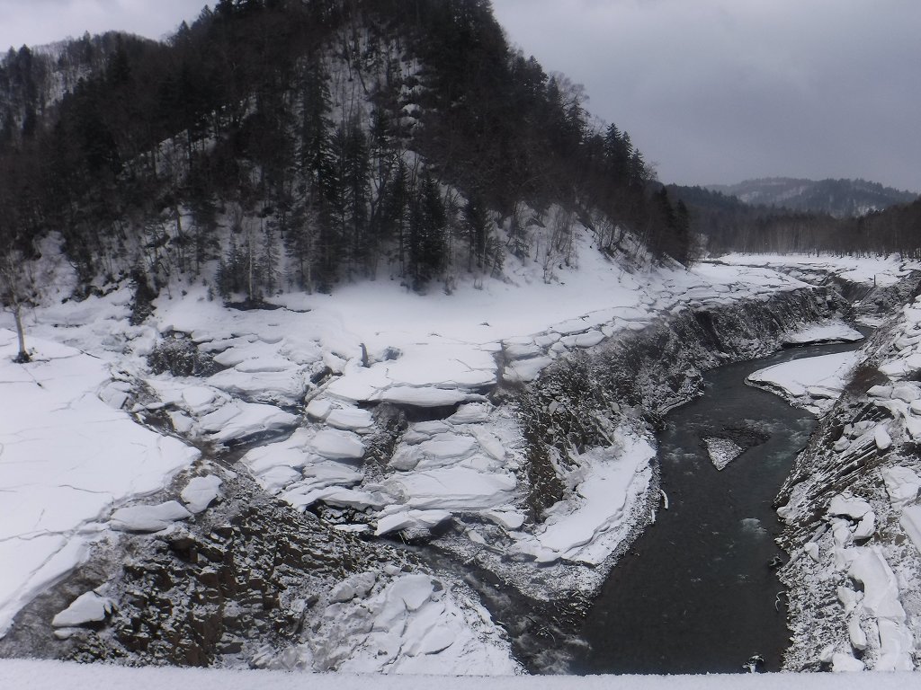 狭薄山に豊平峡大橋~狭薄沢~西尾根経由で行ってきた。足はスノーシュー。定山渓トンネルを過ぎて直ぐに豊平川へ降る林道がある。そのゲート前に車を止め林道をショートカットして豊平峡大橋へ。そこから狭薄沢に沿って右岸に伸びる林道に出る。沢が二股に分かれるがその真ん中の尾根(西尾根)に取り付き1080m経由でピークにたどり着く。
