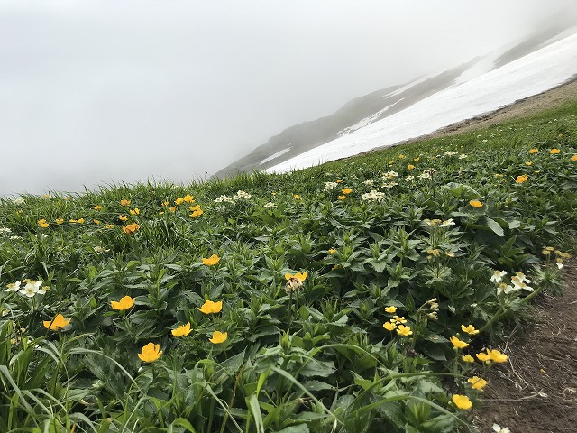 今回はちょっと油断してエゾノハクサンイチゲには少し時期が遅れてしまったが、それはそれでシナノキンバイの時期に丁度ピッタリだった。みんな知ってるこの花は、群落を作り、花の大きさと美しさもあいまって見栄えのする優等生だ。固有種のマシゲゲンゲも終わりかけていたがまだまだ見ることができた。