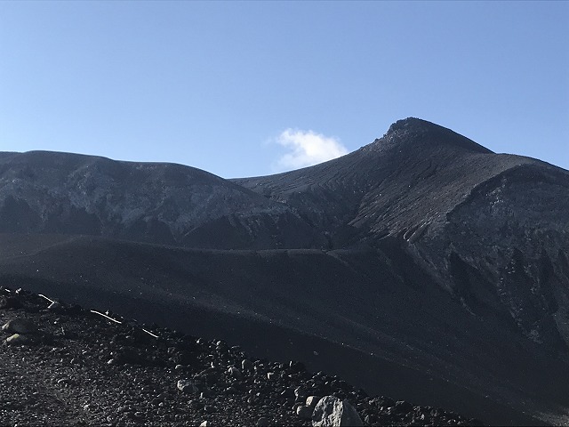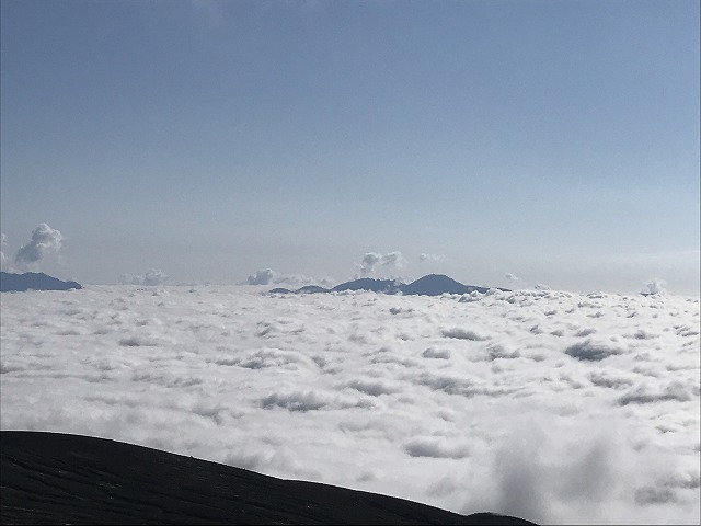 ピークからは手が届きそうなすぐそこに、ふんわりと綿菓子のような雲海。ダイブしたくなるね~・・・しないけど。雲海の上にニペソツがちょっこり顔を出している。