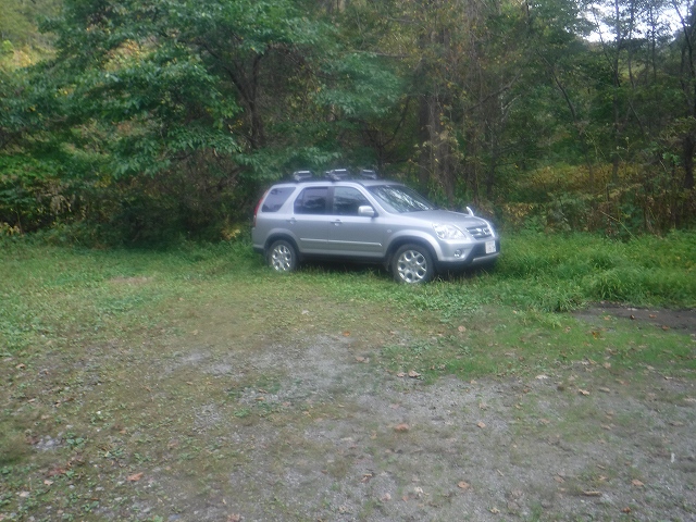 国道から林道に入り約20分ほどで登山口のある奥二股に着くと、広い駐車場には誰もいなかった。クマが多いとされる地域のため、ひるむ心が生じたが、はるばる札幌から来て止める訳にはいかない。